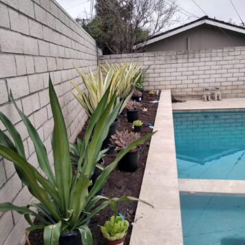 We had the pleasure of transforming Jim and Sandra’s backyard into a stunning outdoor space featuring a beautiful custom pool and a massive slide that takes fun to the next level.